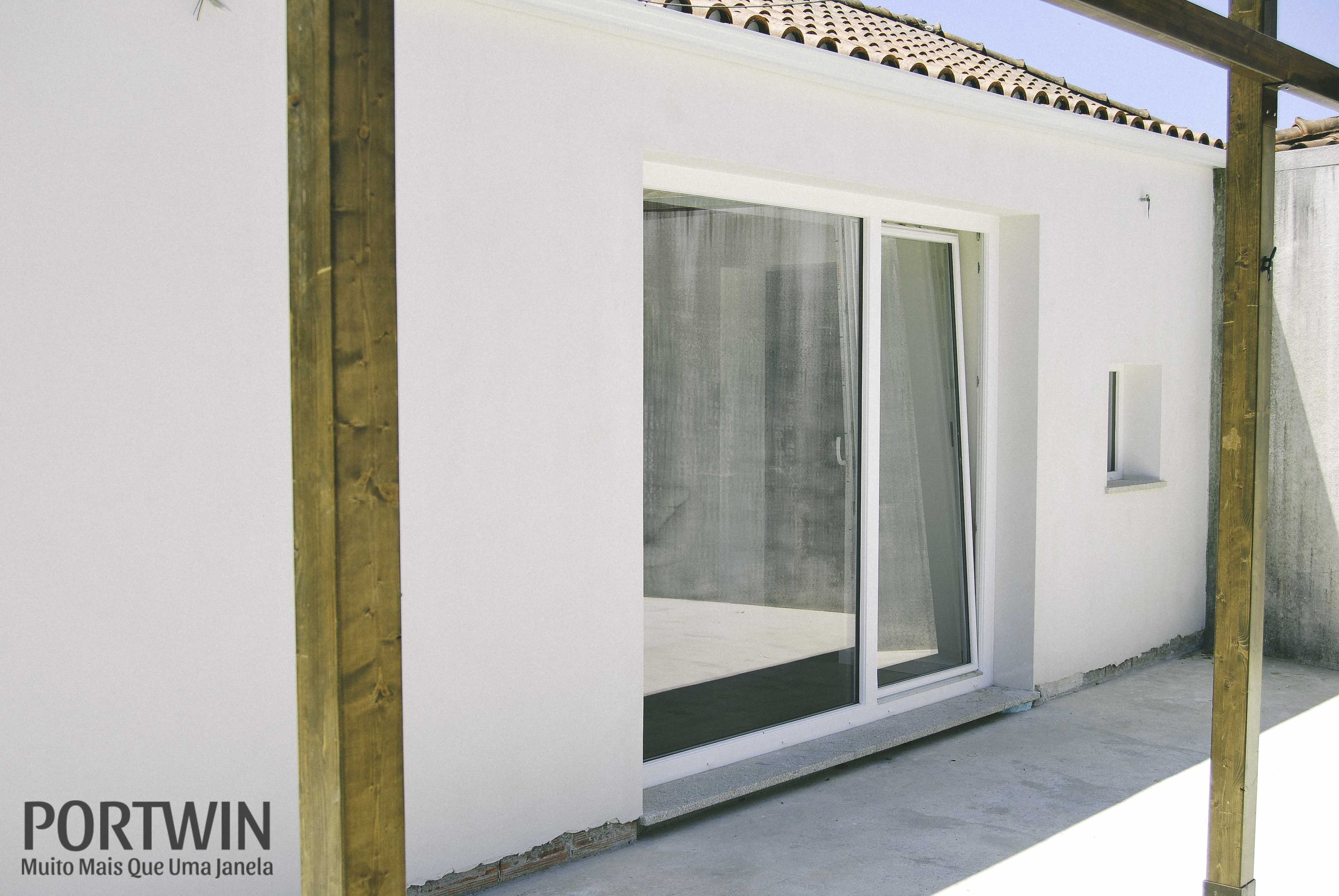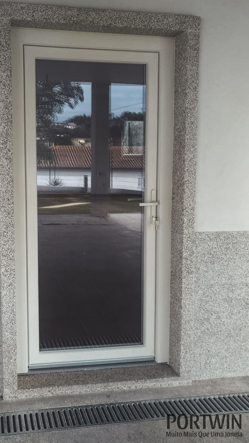 Montagem FINSTRAL, série FIN 72 com folha CLASSIC LINE, na cor branco gravado.