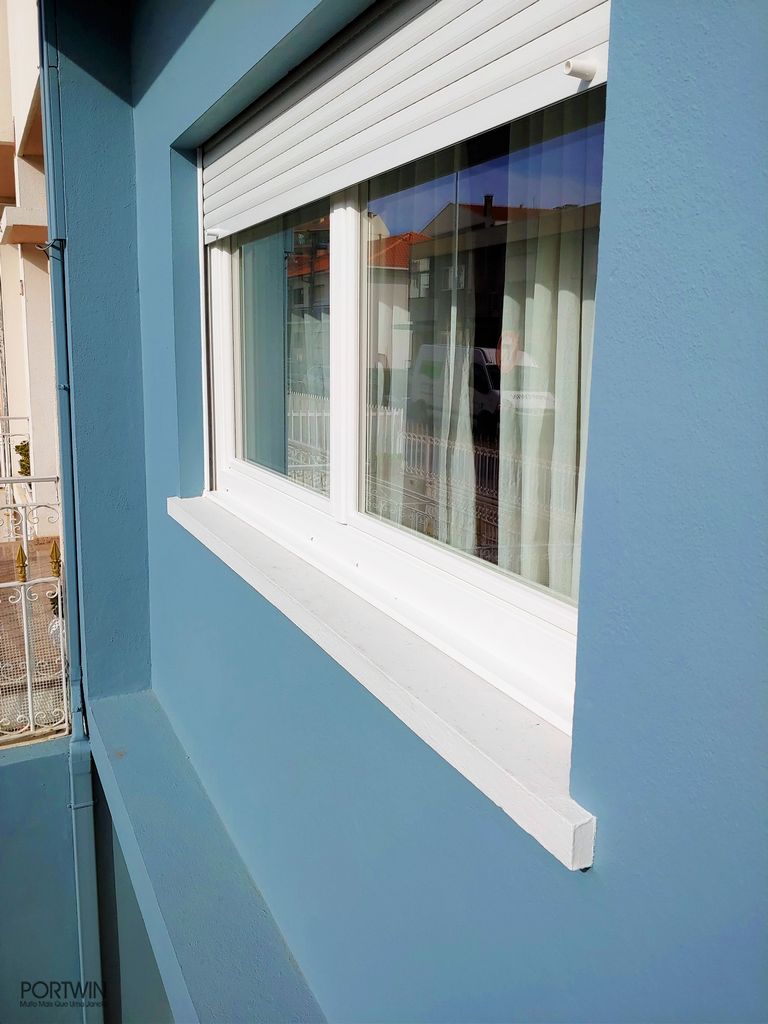 Montagem FINSTRAL, série FIN 72, PVC na cor branco gravado e folha CLASSIC LINE e vidro duplo baixo emissivo 30mm.